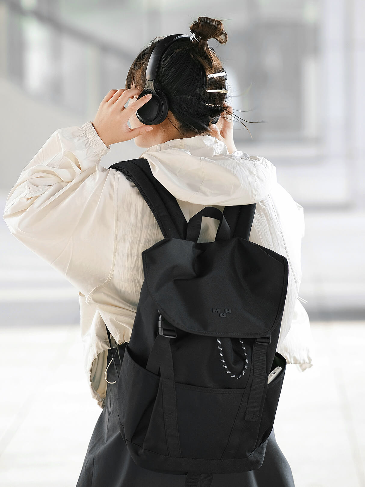 Drawing inspiration from brand's logo MaH, we disassembled, rotated, and overlapped the three letters "M", "A", and "H" to create the current backpack that aligns with MaH's brand visuals. We aspire to inspire young people with our brand and integrate our brand culture into their lives.